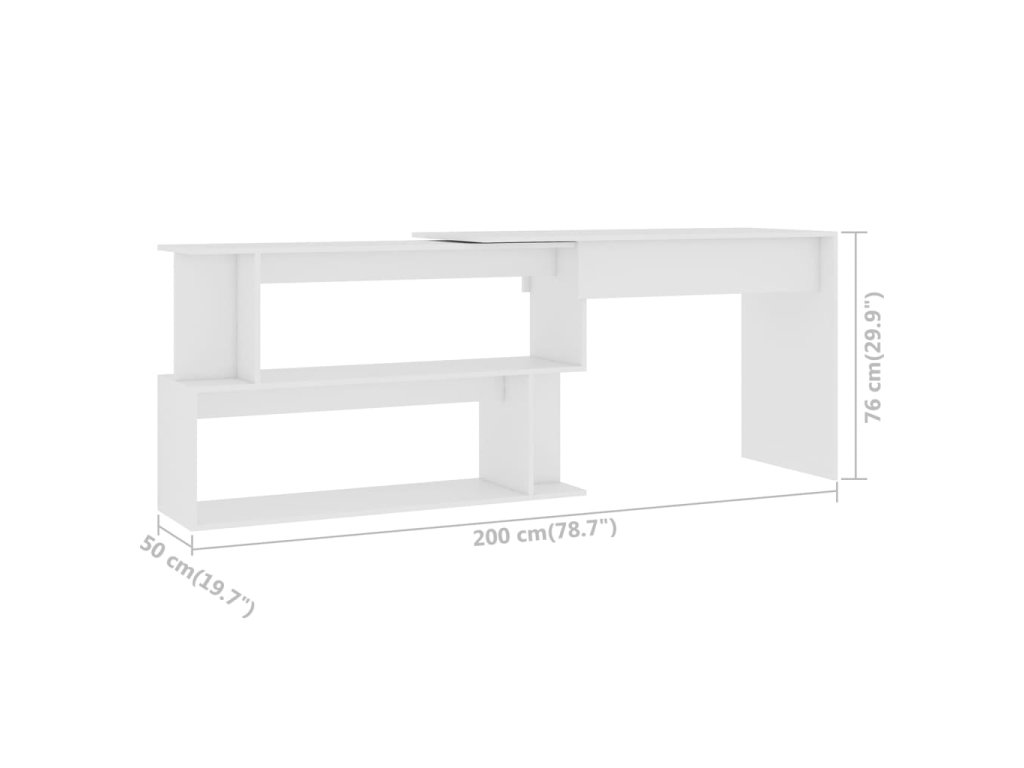 Rohový psací stůl bílý 200 x 50 x 76 cm dřevotříska 801098