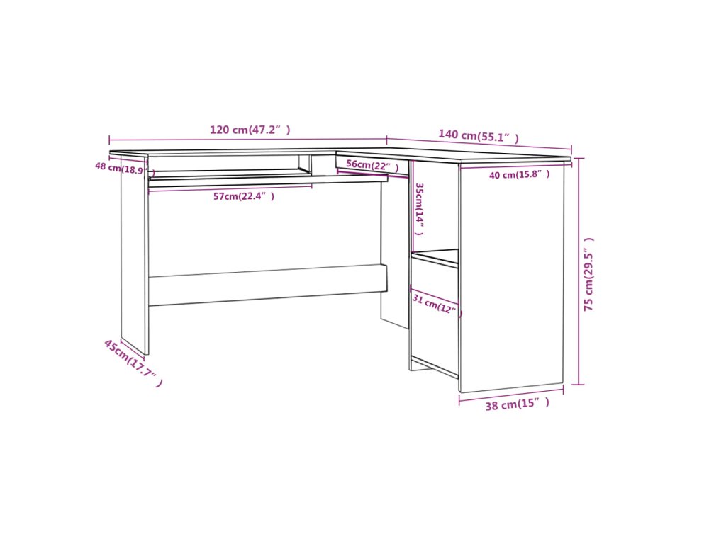 Tento moderní rohový psací stůl ve tvaru písmene L má vysouvací poličku na klávesnici a 2 otevřené police, je tedy velice praktický a zároveň se stane ústředním bodem vaší kanceláře či studovny.