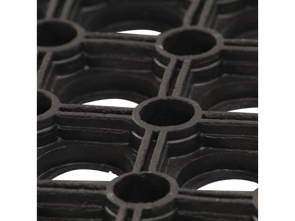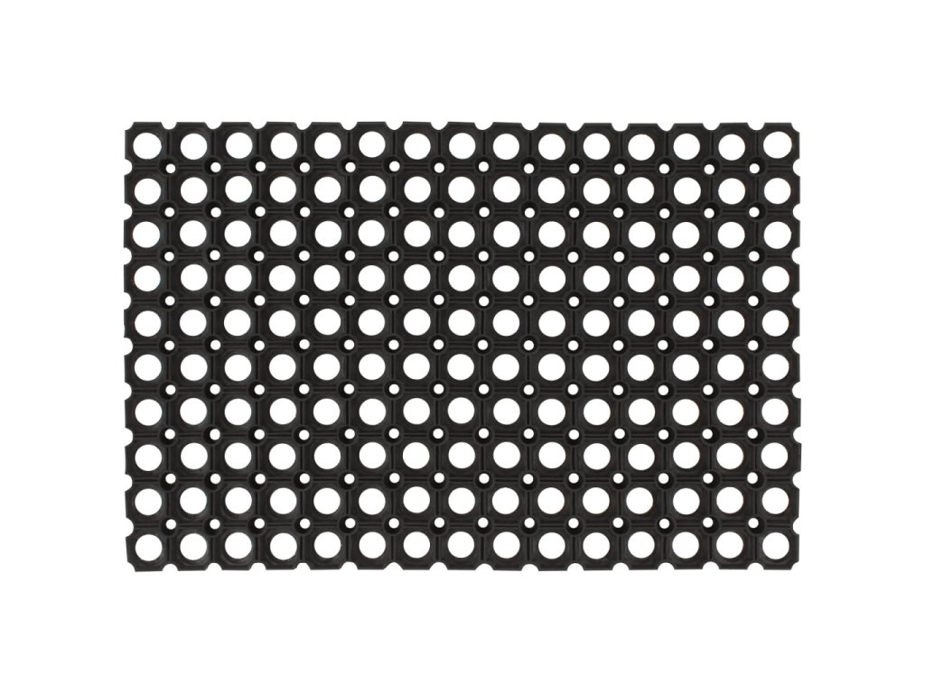 - Odolný materiál: Vchodová rohožka je vyrobena z pružné pryže odolné proti opotřebení, která tlumí nárazy a zajišťuje trvanlivost a odolnost proti skvrnám.