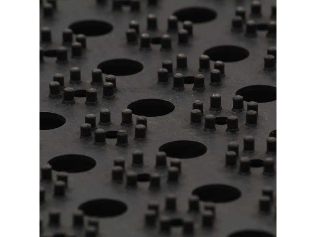 - Funkce odvodnění: Tato gumová rohožka je opatřena drenážními otvory, které pomáhají odvádět bláto a dešťovou vodu z bot. Navíc se snadno čistí – stačí ji opláchnout vodou!
