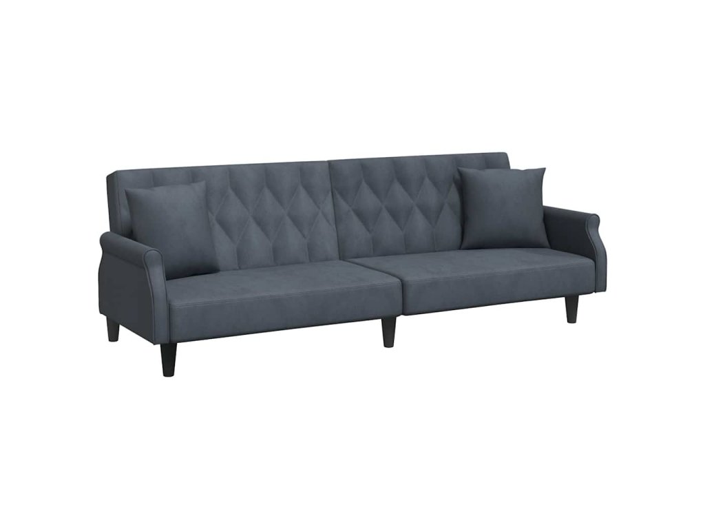 Rozkládací pohovka s područkami tmavě šedá samet 351945