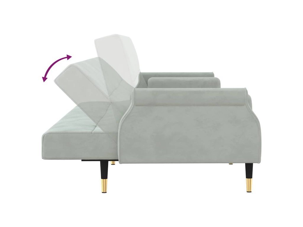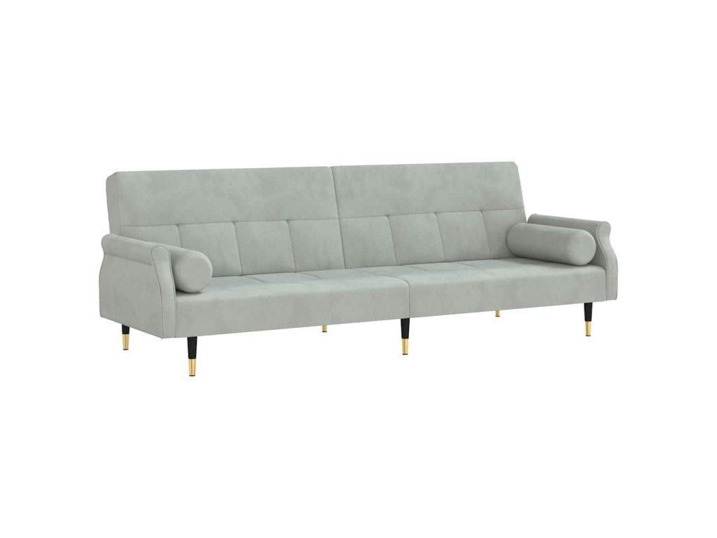 Rozkládací pohovka s poduškami světle šedá samet 351857
