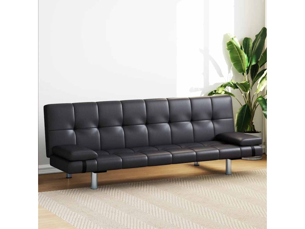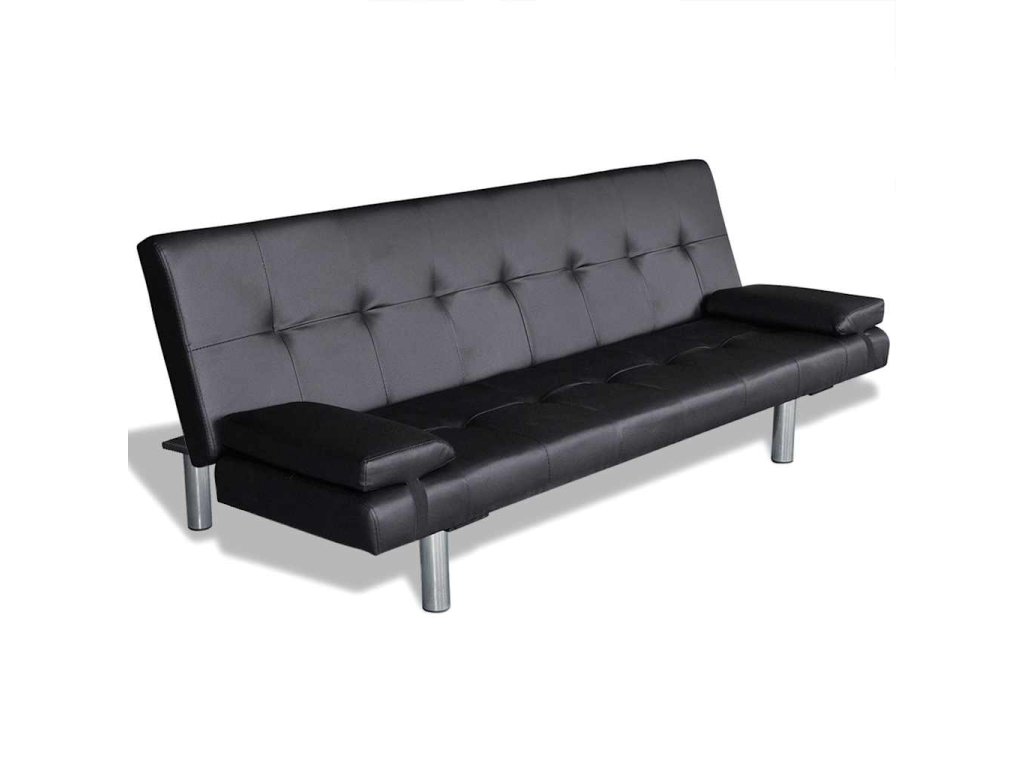 Rozkládací pohovka se 2 polštáři umělá kůže polohovatelná černá 241722