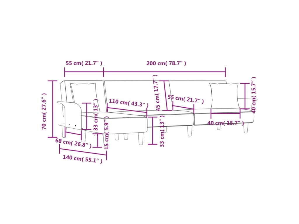 - Výrobek je tvořen rozkládací pohovkou a lenoškou. Lenošku můžete umístit vpravo i vlevo, jak vám to vyhovuje.