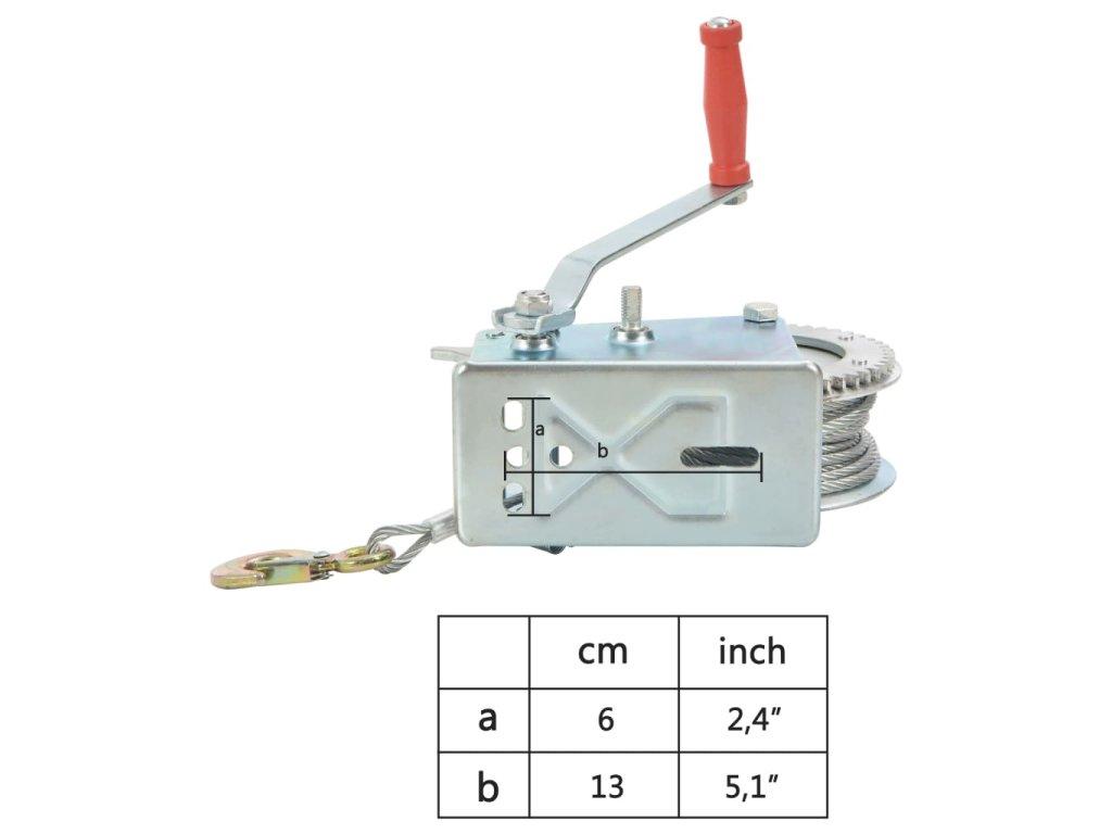 Tento kvalitní ruční naviják s kabelem o délce 10 m je extrémně robustní. Jeho konstrukce z velmi kvalitního železa je velmi odolná a má dlouhou životnost. Tento velmi kvalitní ruční naviják uplatníte s pickupy, přívěsy a pro další mobilní aplikace. Rukojeť navijáku je designovaná k použití na dvou oddělených osách. Každá osa má svůj vlastní převodový poměr, takže je možné zvolit buď rychlý tah (který vyžaduje více síly) nebo pomalý tah (méně náročný, vhodnější pro táhnutí těžkých objektů).