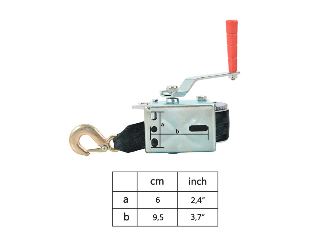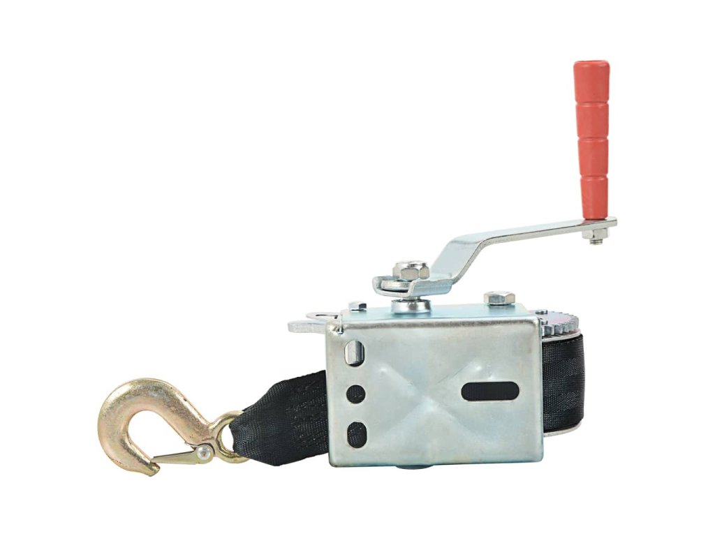 Ruční naviják s tkaným popruhem je ideální pro zdvihání nákladních aut a přívěsů, ale i pro jiné tažné úkony. V našem obchodě naleznete také kompatibilní stojan na naviják přívěsu pro lodě (SKU 90634), jehož zakoupením získáte kompletní set.