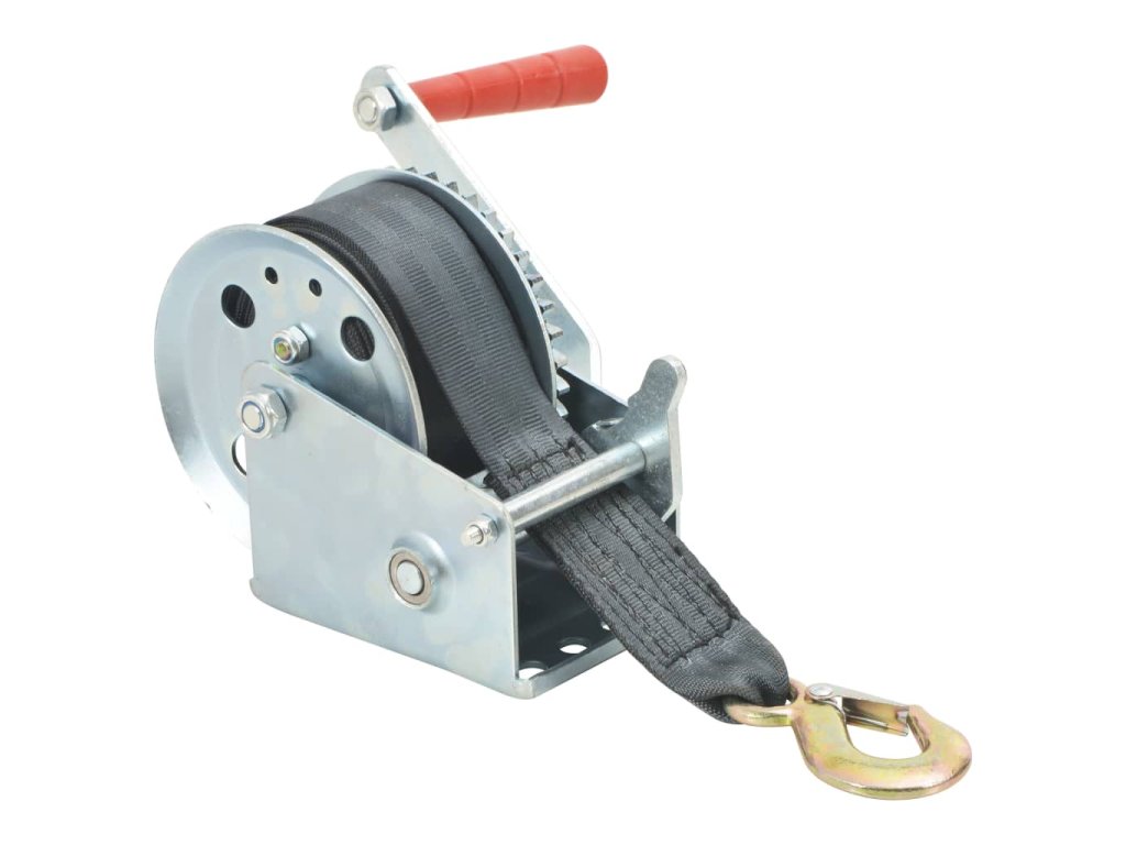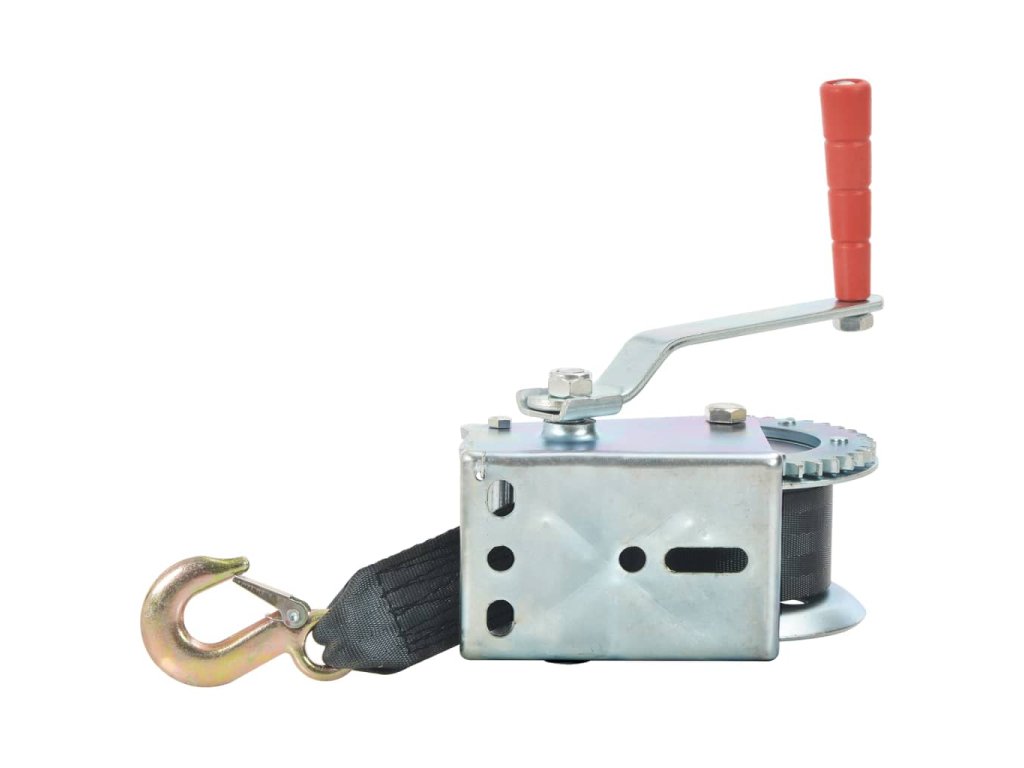 Ruční naviják s tkaným popruhem je ideální pro zdvihání nákladních aut a přívěsů, ale i pro jiné tažné úkony. V našem obchodě naleznete také kompatibilní stojan na naviják přívěsu pro lodě (SKU 90634), jehož zakoupením získáte kompletní set.