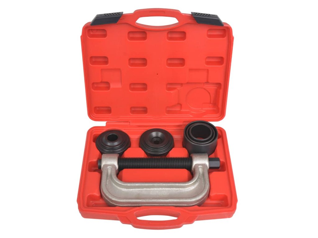 Tato servisní sada na kulové čepy se stahovákem a spojkou C je perfektní pro odstranění a instalaci součástí, jako jsou kulové klouby, univerzální klouby nebo brzdové kotouče. Je také perfektní pro odstranění zkorodovaných a zrezivělých částí.