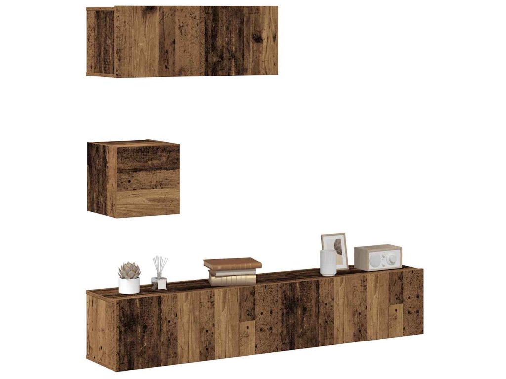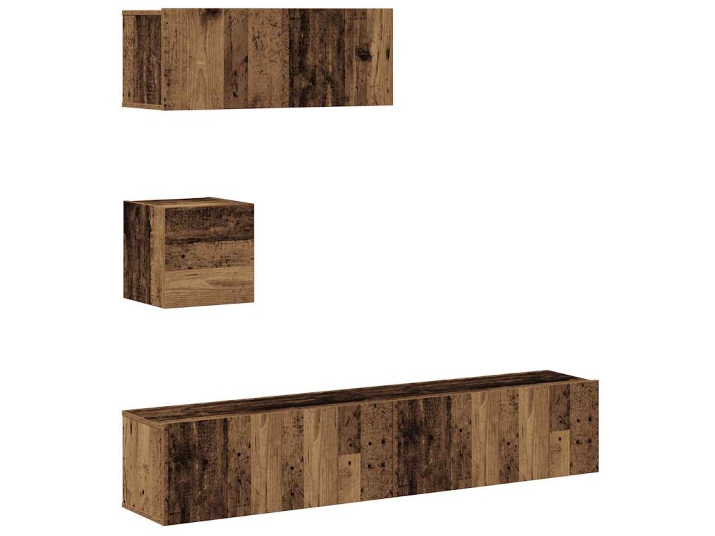 Sada 4 kusů nástěnné TV skříňka starého dřeva kompozitní dřevo 3329155