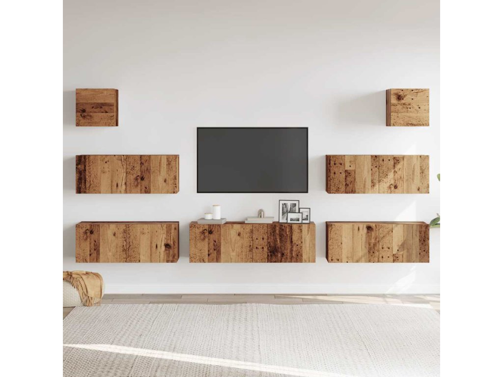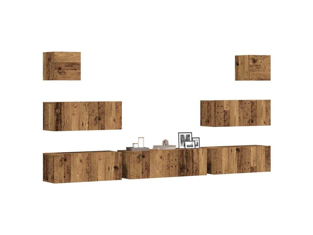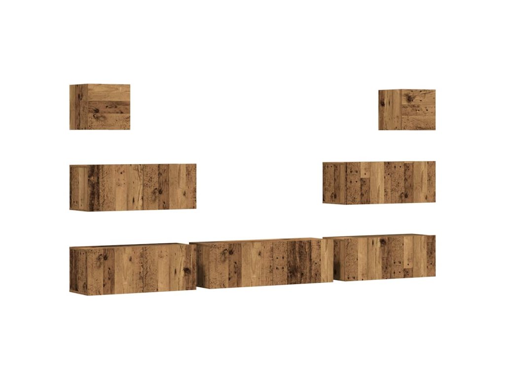Sada 7 kusů nástěnné TV skříňka starého dřeva kompozitní dřevo 3329019