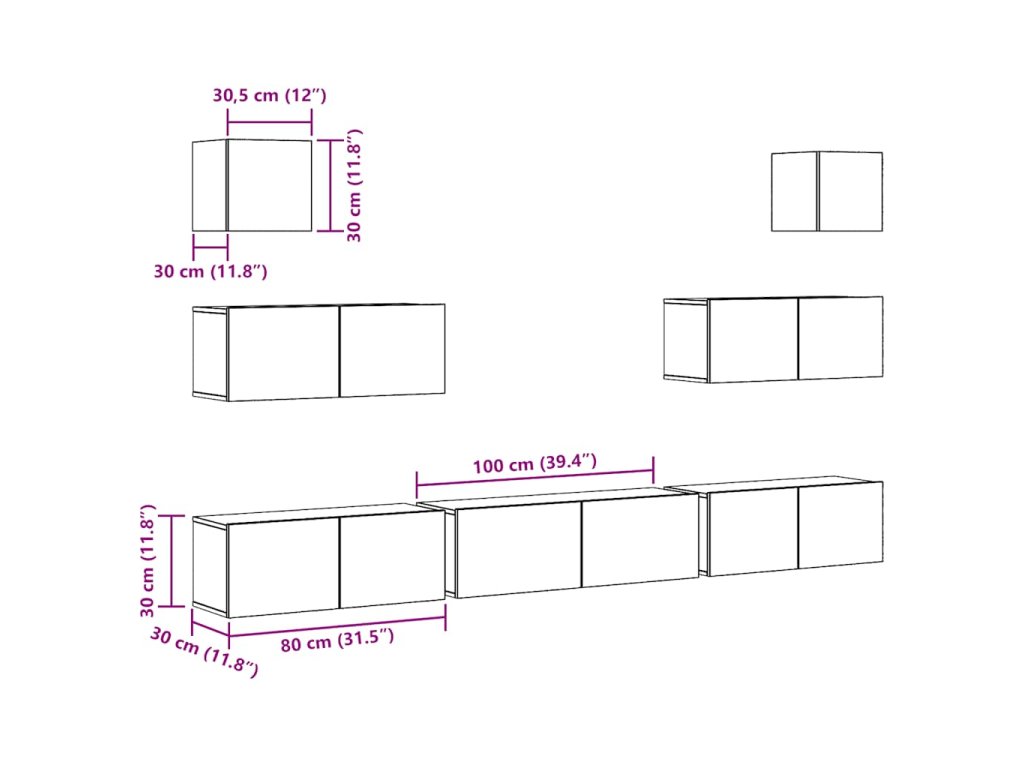 - 4x TV skříňka: 80 x 30 x 30 cm (Š x H x V)