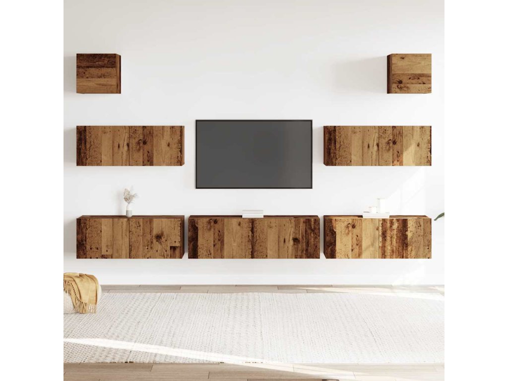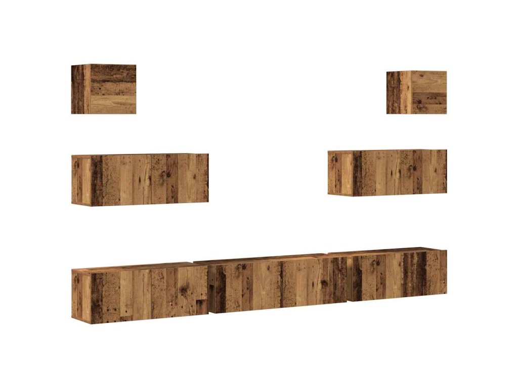 Sada 7 kusů nástěnné TV skříňka starého dřeva kompozitní dřevo 3329211