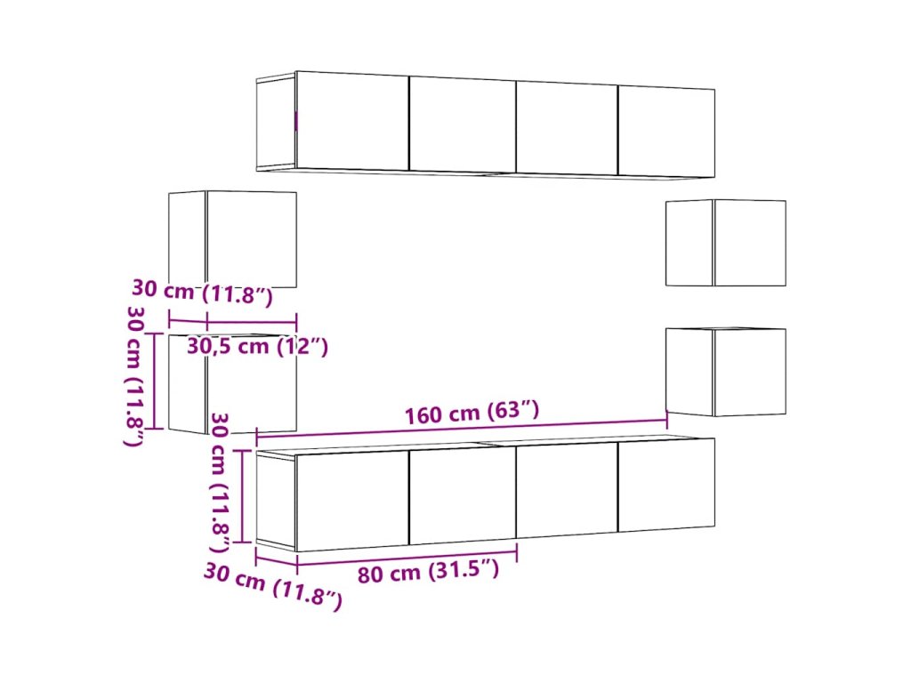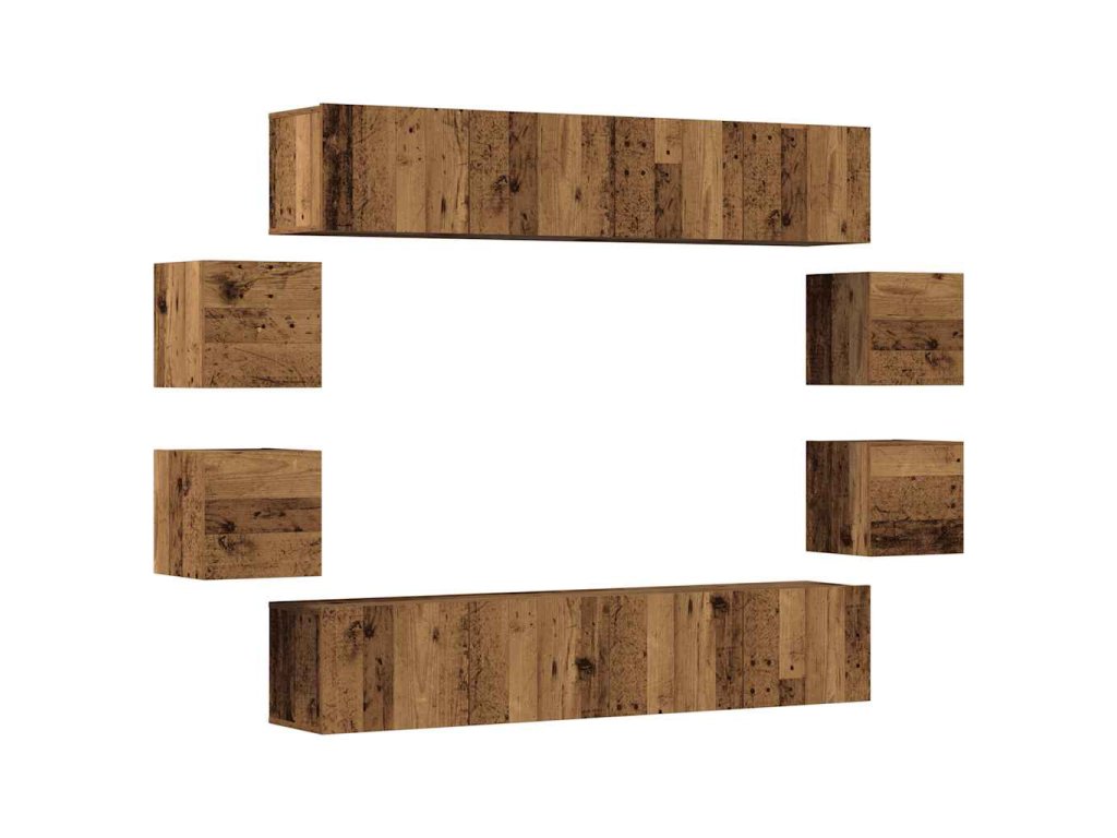 Sada 8 kusů nástěnné TV skříňka starého dřeva kompozitní dřevo 3328949
