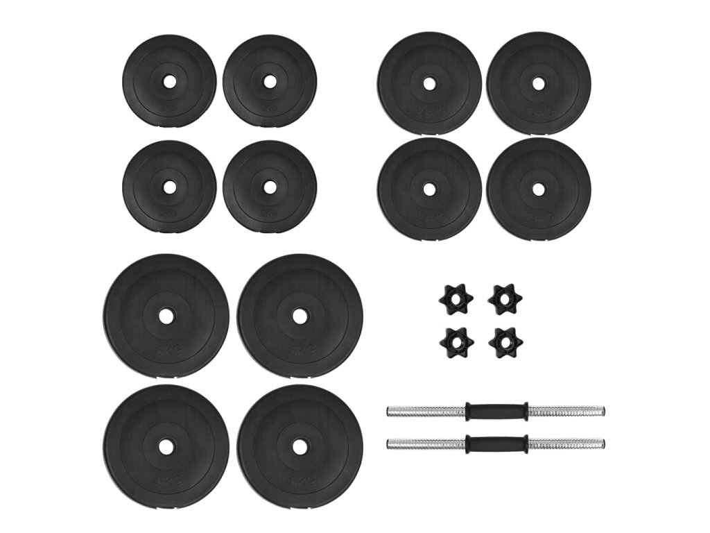 • Odolný materiál: Činka je vyrobena z oceli a je pevná a stabilní. Závaží jsou vyrobena z betonu a pokryta robustním plastem šetrným k podlaze. Díky tomu nezaznamenáte žádné nepříjemné řinčení závaží.