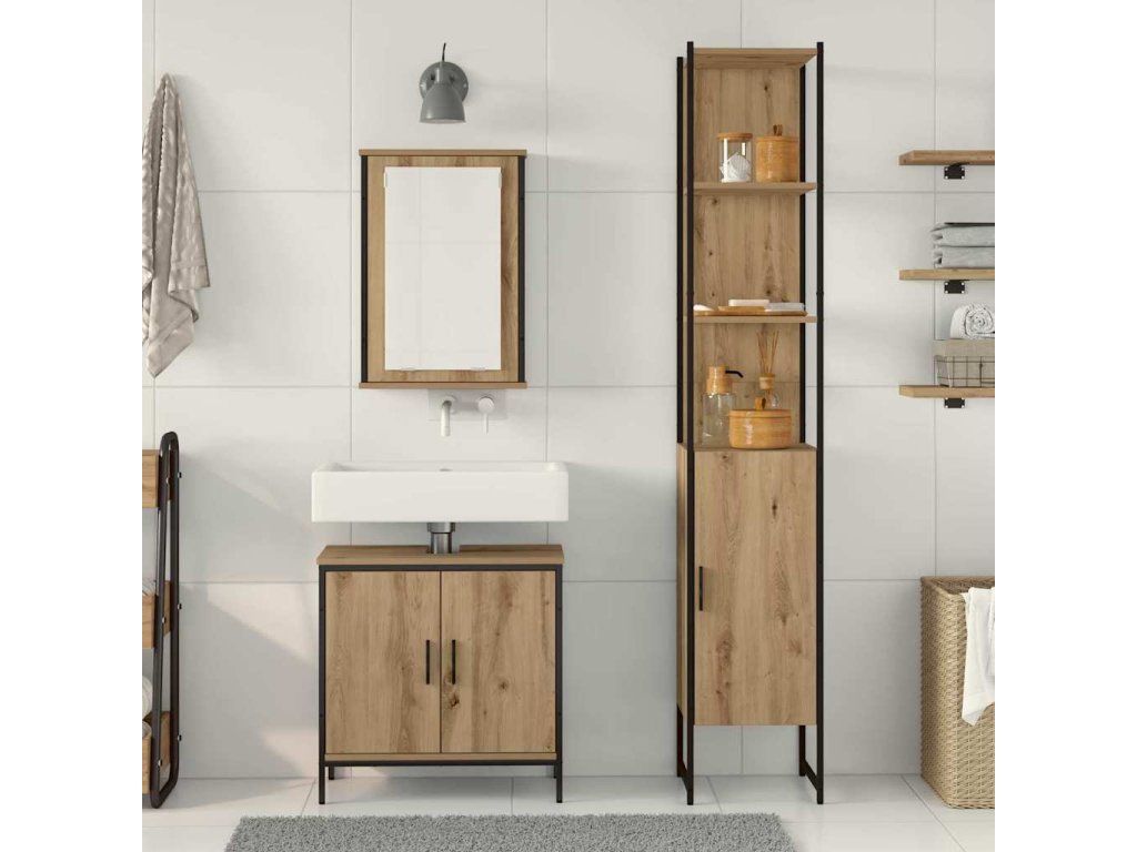 Tenhle moderní koupelnový nábytek vnáší do vaší koupelny styl a praktičnost. Se svým minimalismem zahrnuje vícero komponentů, vyrobených z kvalitních materiálů a vytváří tak soudržný vzhled a efektivní organizaci. Ať už chcete využít malý prostor, nebo přidat moderní nádech, tenhle set je skvělou volbou pro každou koupelnu.