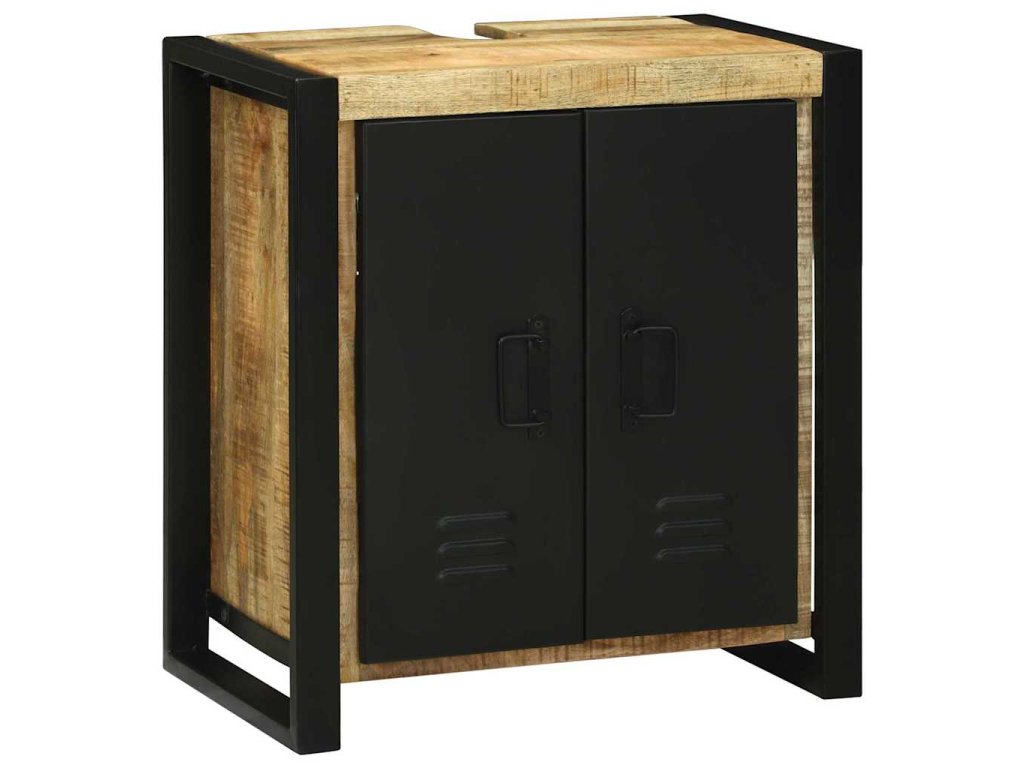 - Robustní materiály: Vyrobeno z dřevěných dveří a železných komponentů, tento koupelnový nábytek slibuje dlouhou životnost. Dřevo dodává teplý a klasický pocit, zatímco železné prvky zajistí pevnost i na vlhkých místech koupelny.