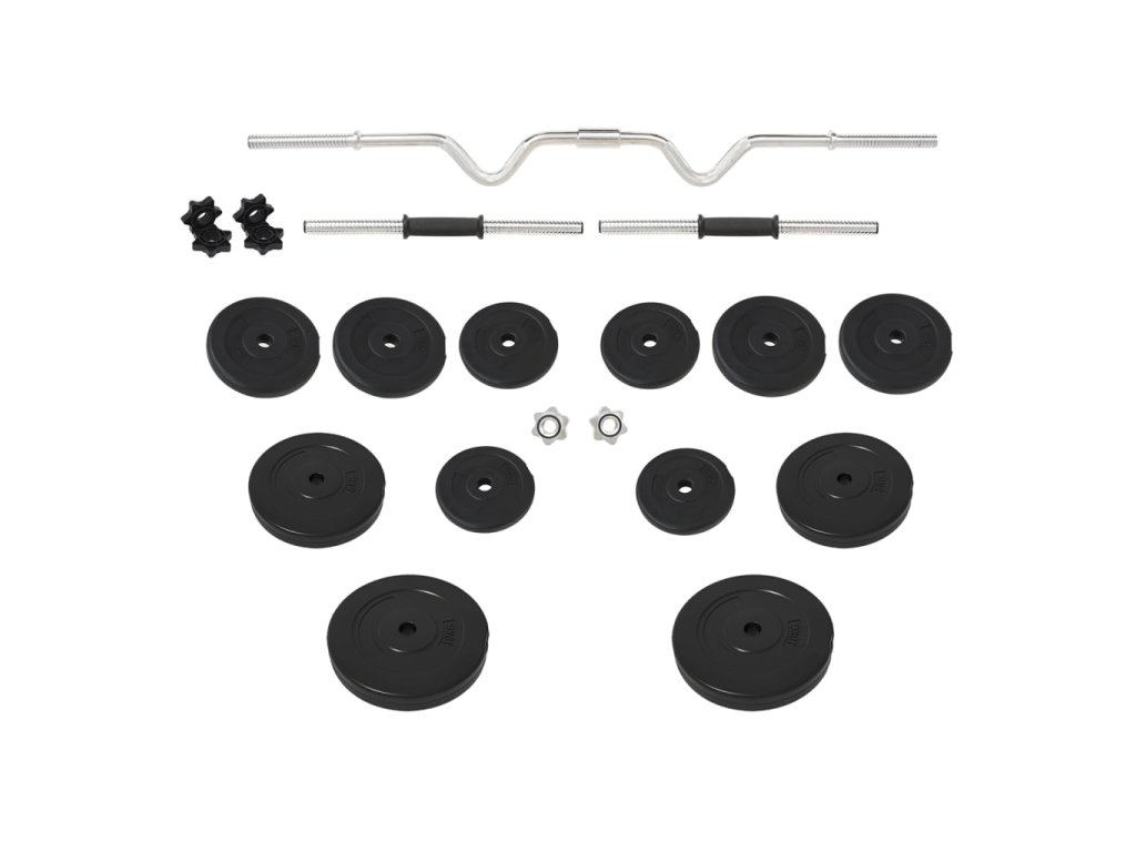 • Hmotnost kotoučů: 2x 10 kg, 4x 5 kg, 4x 2 kg, 4x 1,25 kg