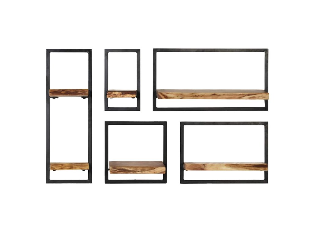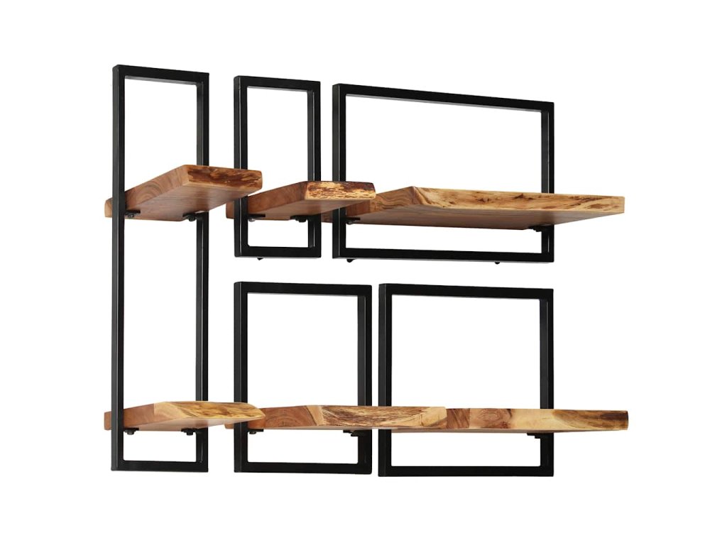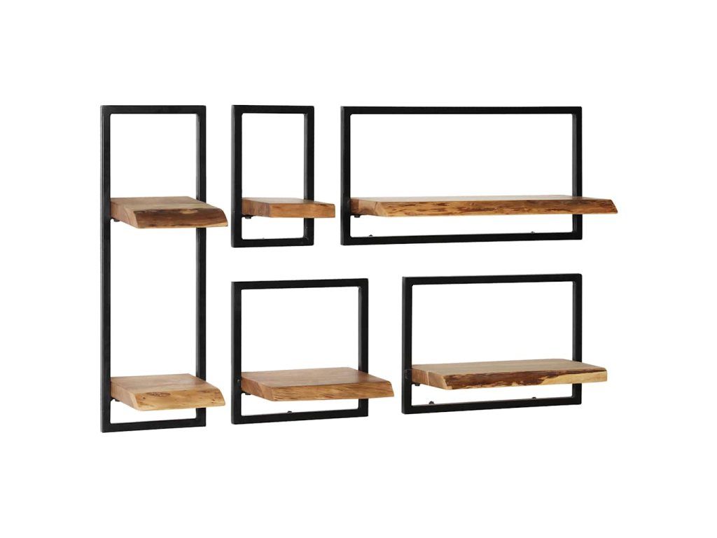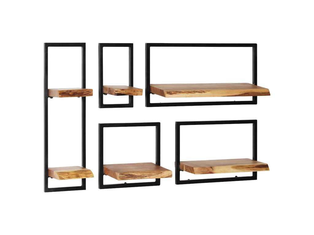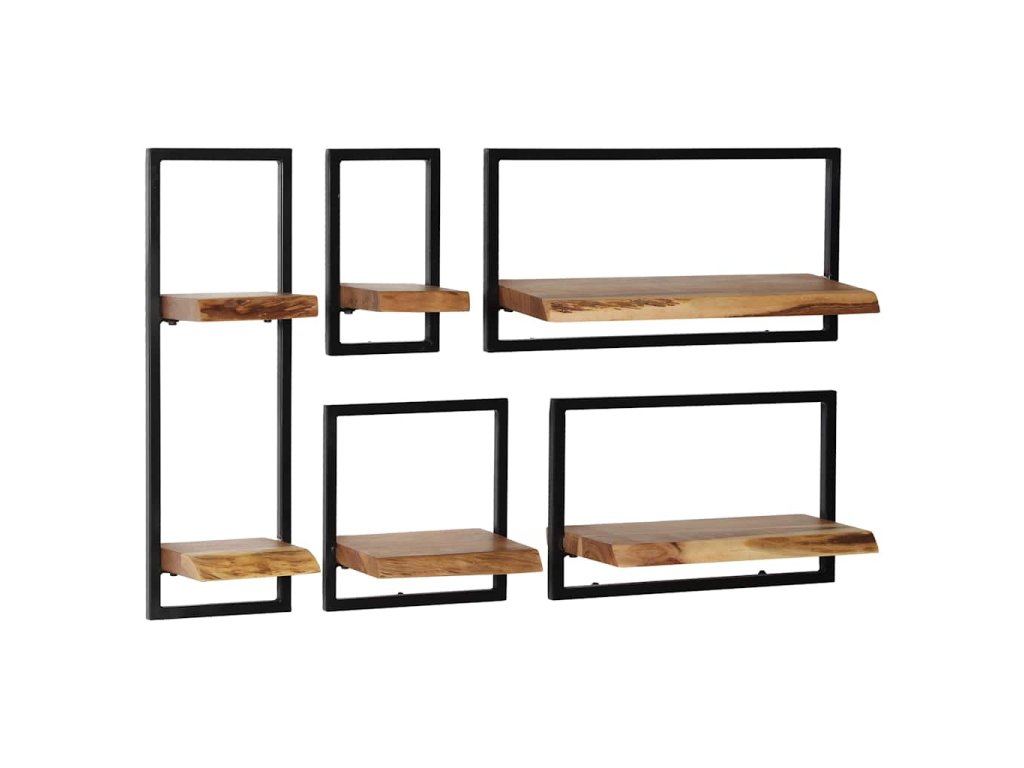 Sada nástěnných polic 5 kusů masivní akácie a ocel 246014