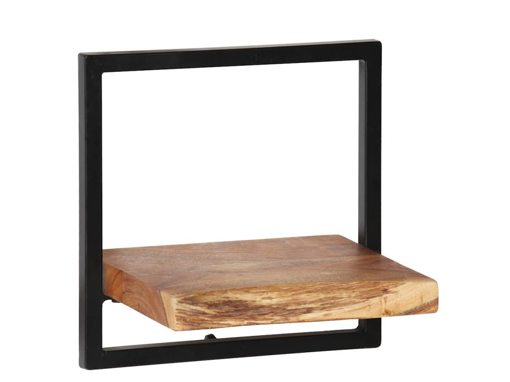 - Materiál: police z masivního akáciového tvrdého dřeva + ocelový rám s práškovým nástřikem