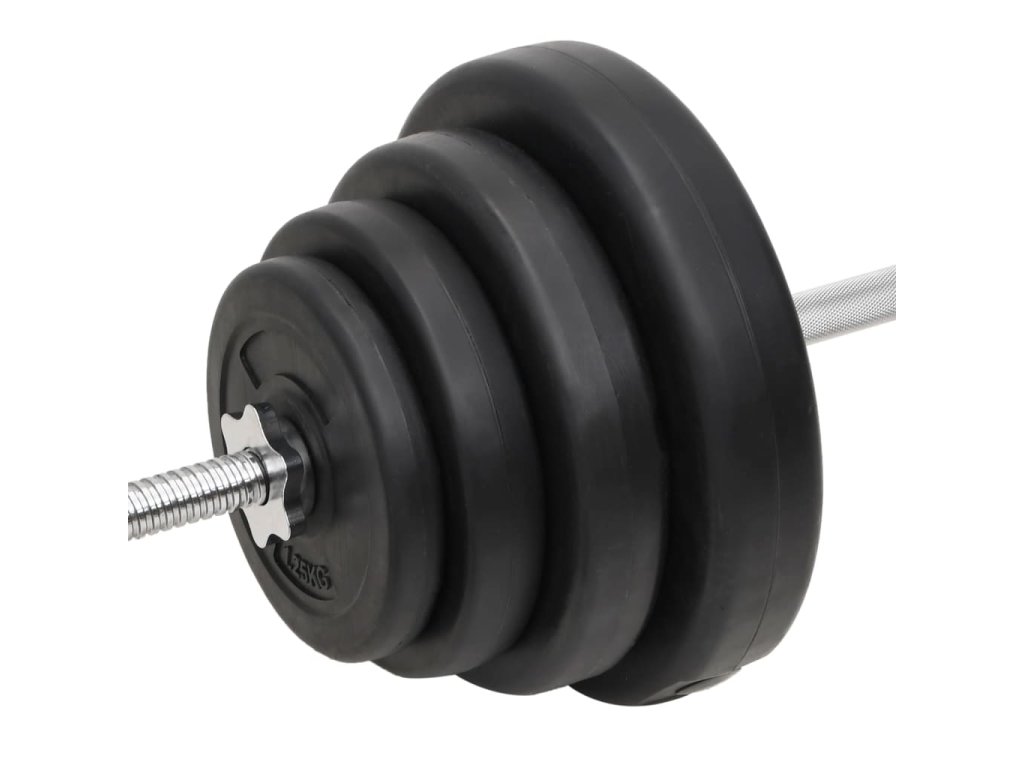 - Odolný materiál: Činka je vyrobena z pochromované oceli a je pevná a stabilní. Závaží je vyrobené z cementu a potažené robustním plastem šetrným k podlaze. Nezaznamenáte tedy žádné nepříjemné řinčení závaží.