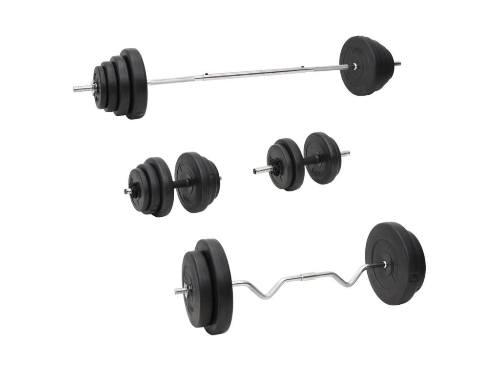 Tato všestranná sada obouručních a jednoručních činek se závažím je perfektní volbou pro ty, kteří hledají různé možnosti cvičení.