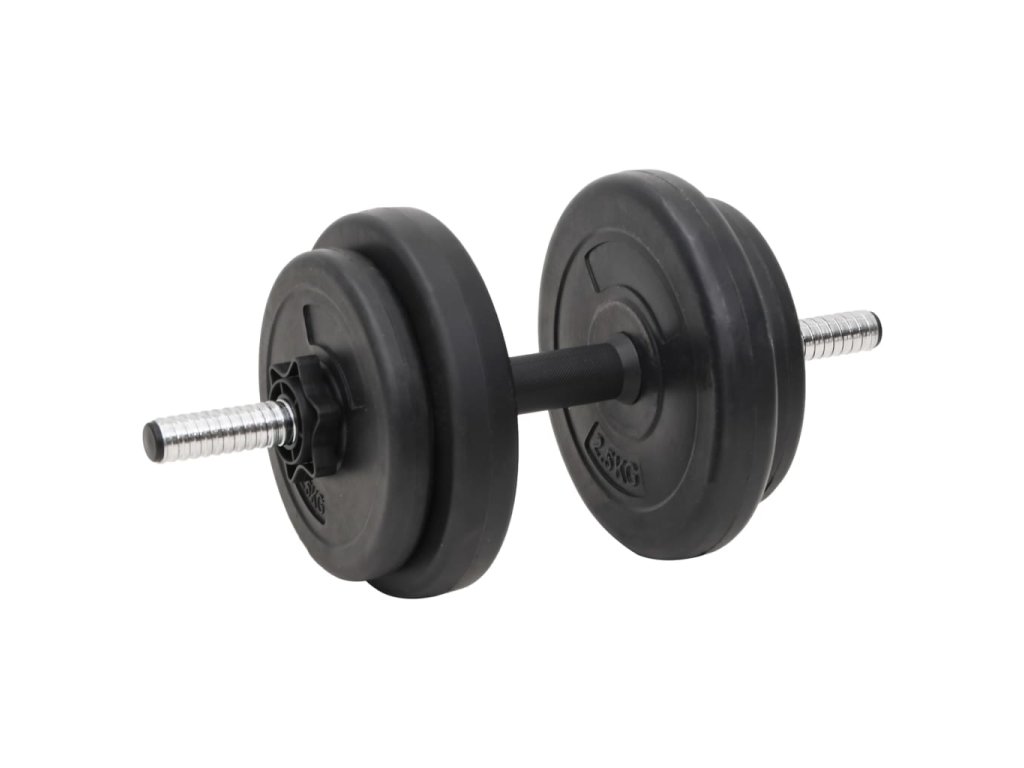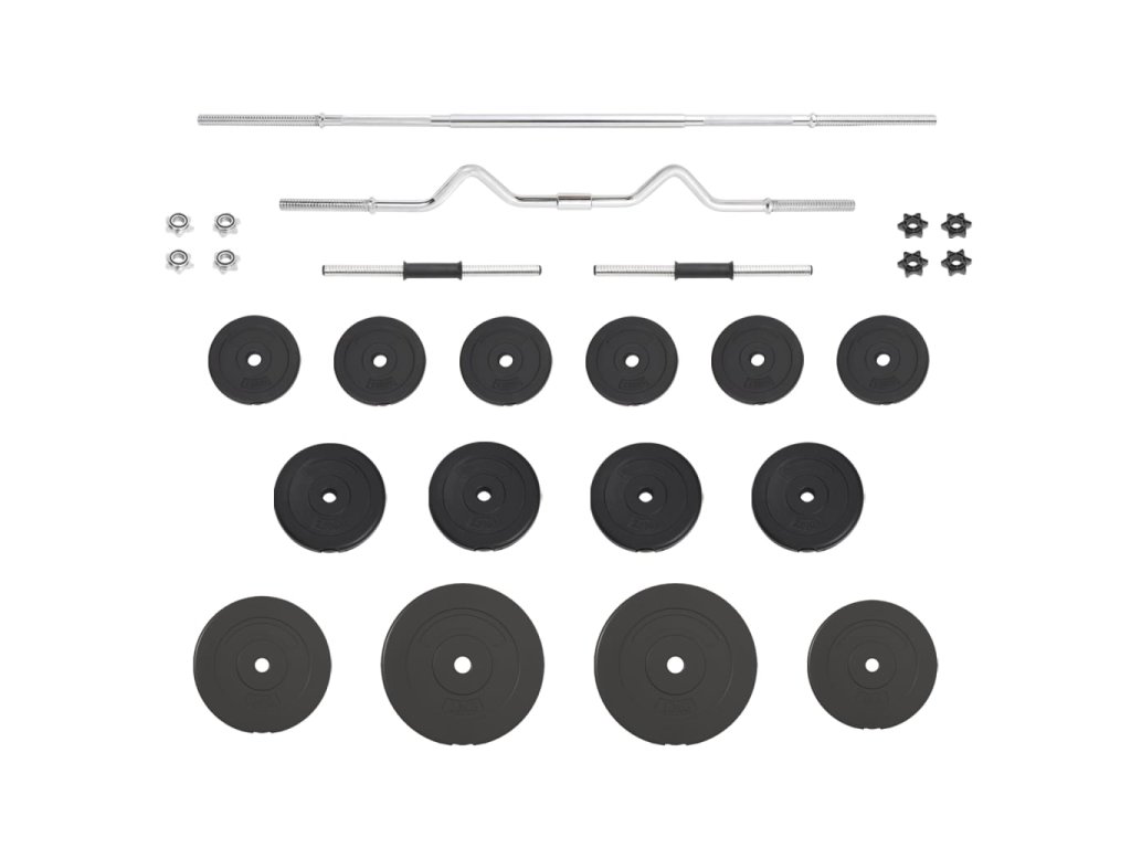 - Hmotnost kotoučů: 4x 2,5 kg, 6x 1,25 kg, 2x 10 kg, 2x 5 kg