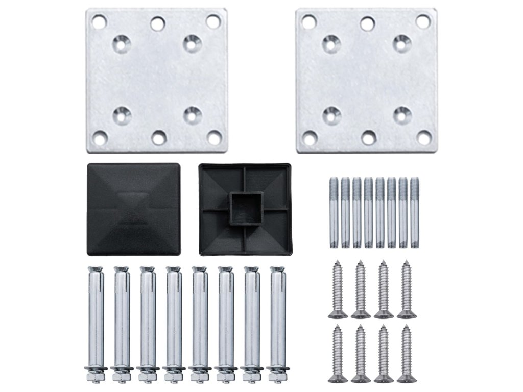 - Všestranný sloupek: Je vybaven třemi otvory pro různé možnosti montáže a multifunkční ocelové nožičky lze buď přišroubovat k povrchu nebo ukotvit do cementového základu.