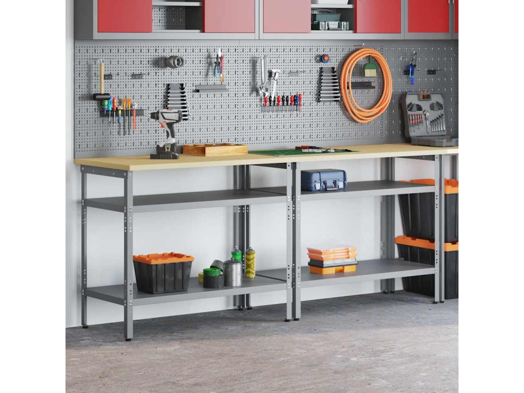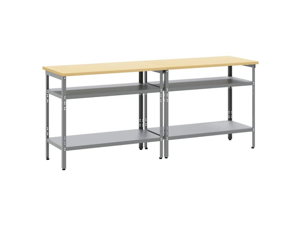 Tato sada pracovních stolů z oceli je ideální kombinací funkčnosti a průmyslového stylu pro profesionální dílny i domácí garáže. Obdélníkový stůl zvládne i těžší úkoly a má moderní design. Díky hladkému povrchu se bezproblémově hodí do jakéhokoliv prostoru. Kovové police poskytují dost úložného místa, takže máte nářadí a potřeby pěkně srovnané a přehledné. Představte si tento stůl jako středobod vašeho pracovního místa, který dodává atmosféru profesionality, pořádku a stylu.