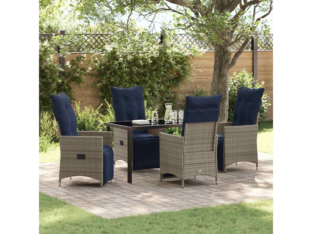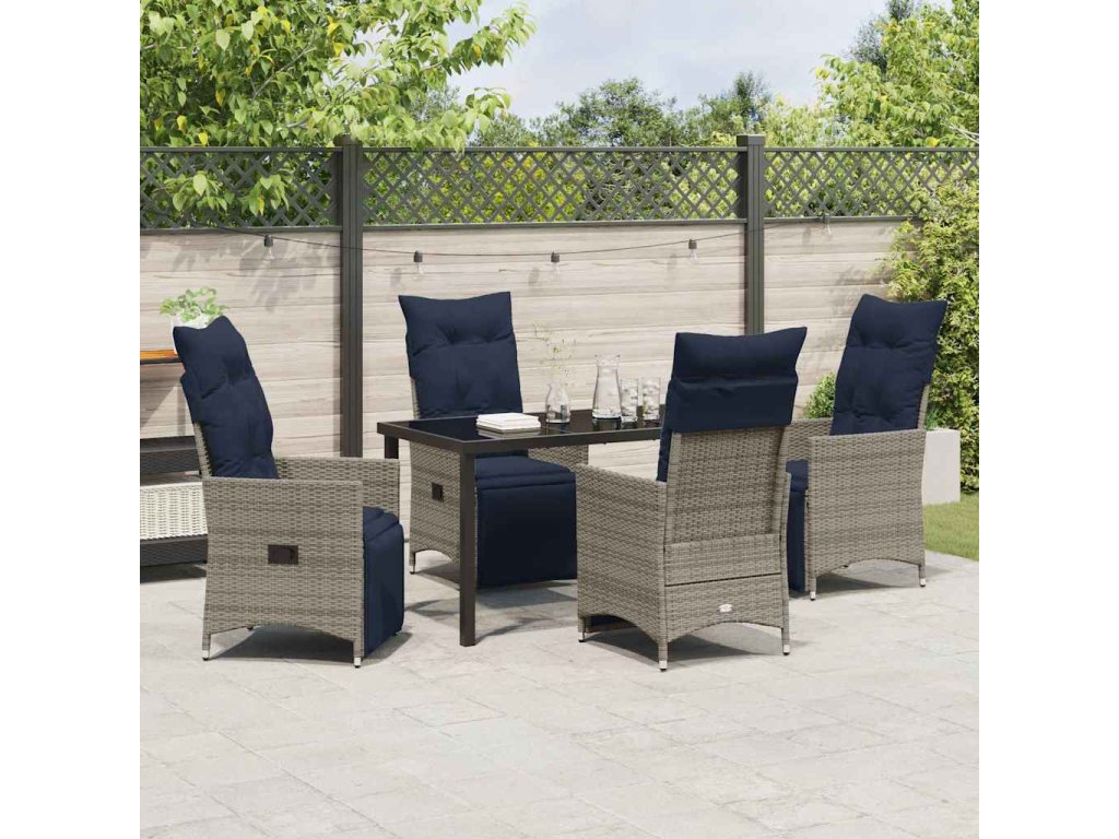 Sada stolu a židlí s polštářem 5 pcs Šedá PE ratan 3379599