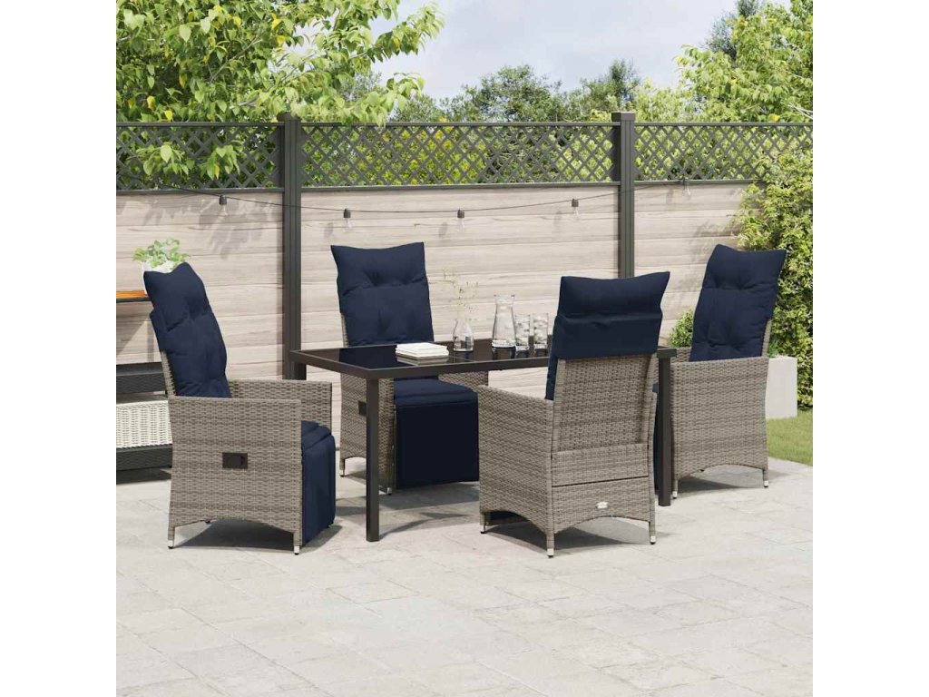 Sada stolu a židlí s polštářem 5 pcs Šedá PE ratan 3379600