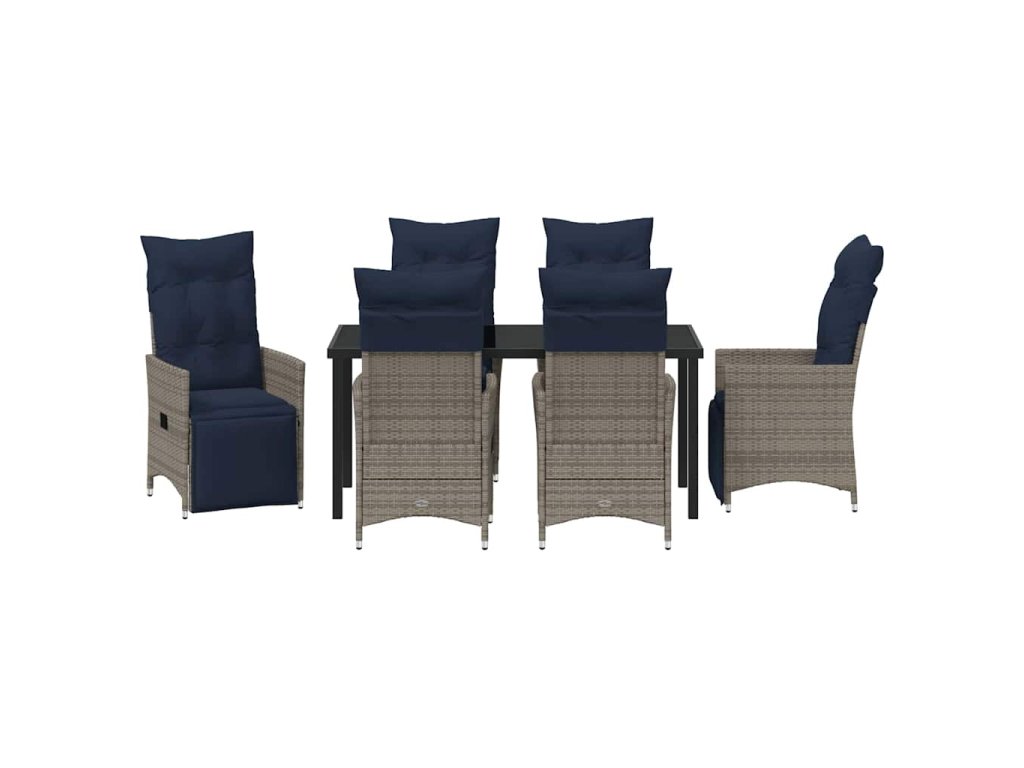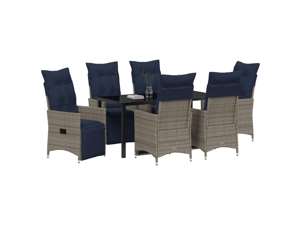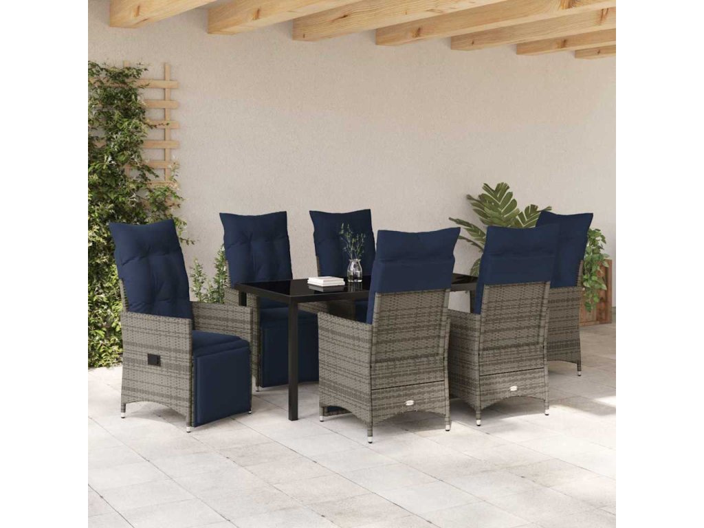 Sada stolu a židlí s polštářem 7 pcs Šedá PE ratan 3379601