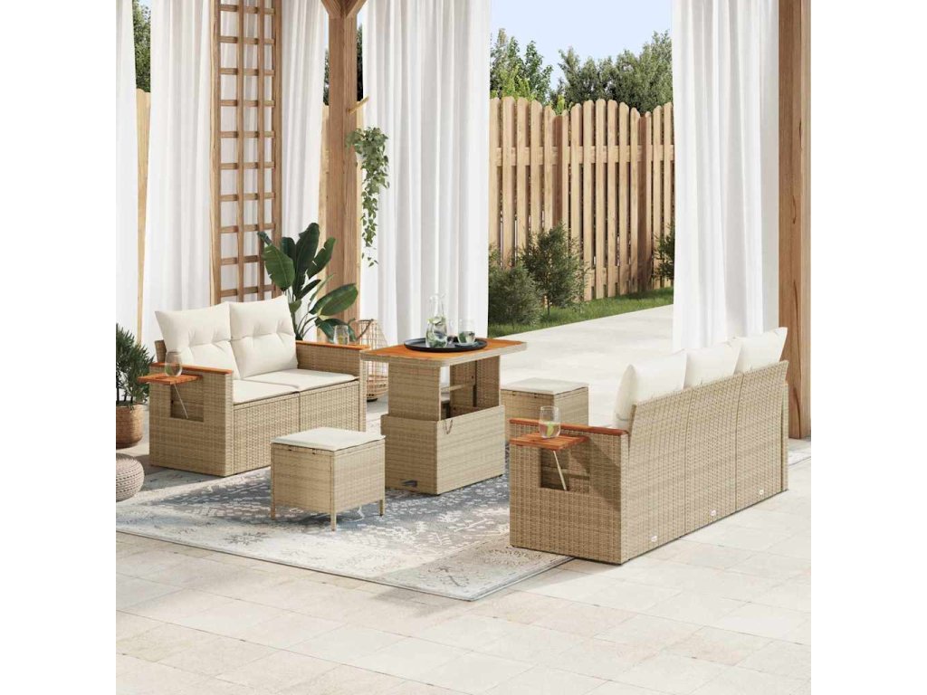 Sada zahradních pohovek 10 pcs Béžová a krémová polyratan 3365071