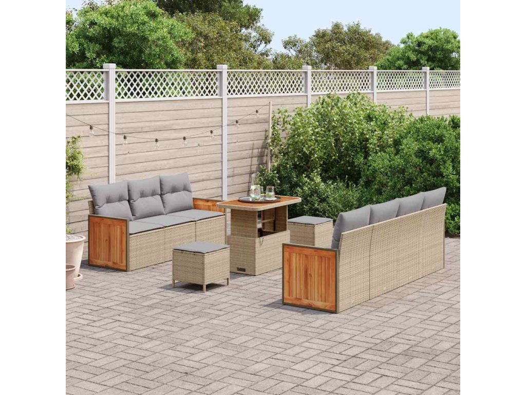 Tento modulární zahradní set je pro ty, co mají rádi pohodlí a flexibilitu venku. S moderním stylem nabízí variabilní sezení pro různé uspořádání na zahradě nebo terase. Kombinuje polyratan a akáciové dřevo, takže to vypadá skvěle a je to praktické. Ať už pořádáte zahradní party nebo hledáte klidné místo k odpočinku, jeho přizpůsobivost pokryje vaše potřeby, ideální pro jakoukoliv společnost nebo relaxaci.