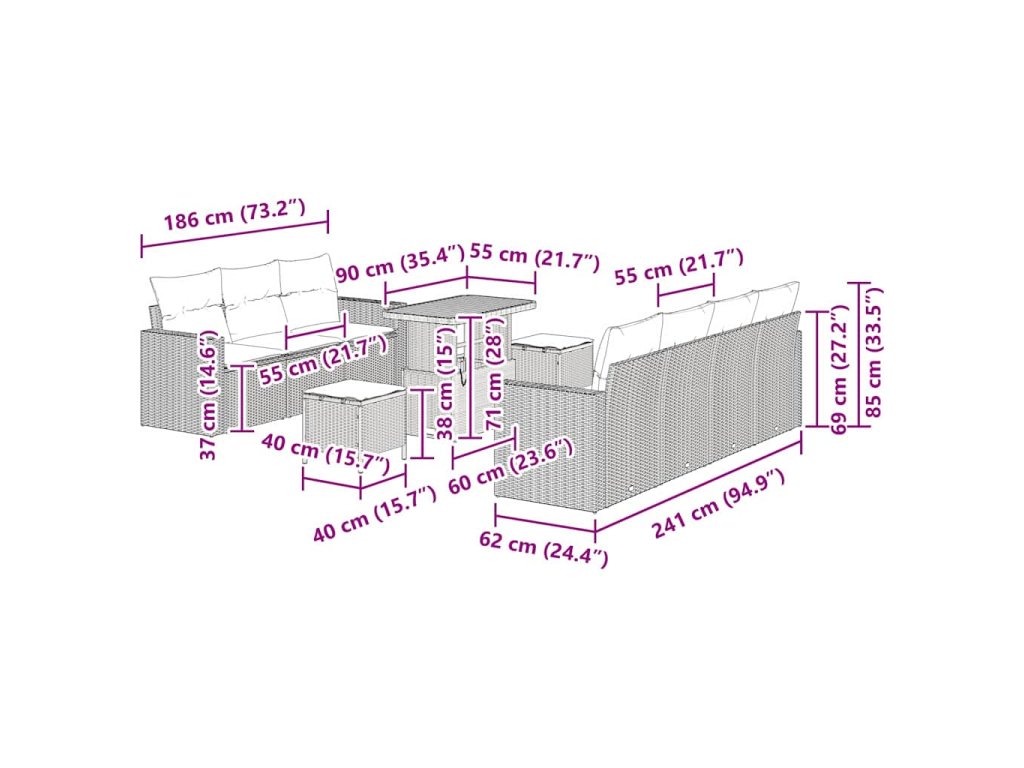- Přizpůsobitelná konfigurace: Modulární design umožňuje snadné přeuspořádání podle potřeb a estetiky. Ať už dáváte přednost útulnému posezení nebo prostoru na relaxaci, set to bez problémů splní.