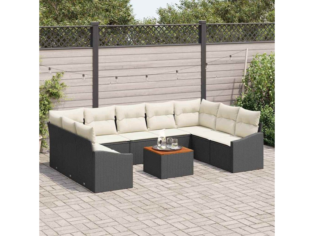 Sada zahradních pohovek 10 pcs Černá a krémová polyratan 3356542