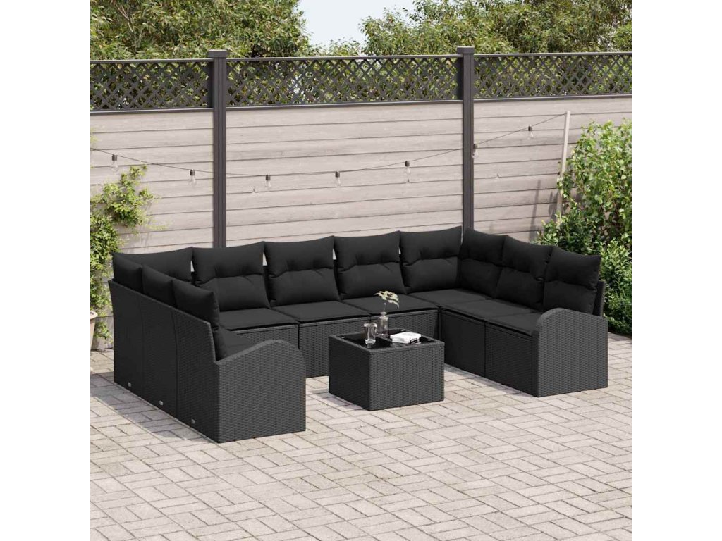Sada zahradních pohovek 10 pcs Černá Poly ratan 3346213