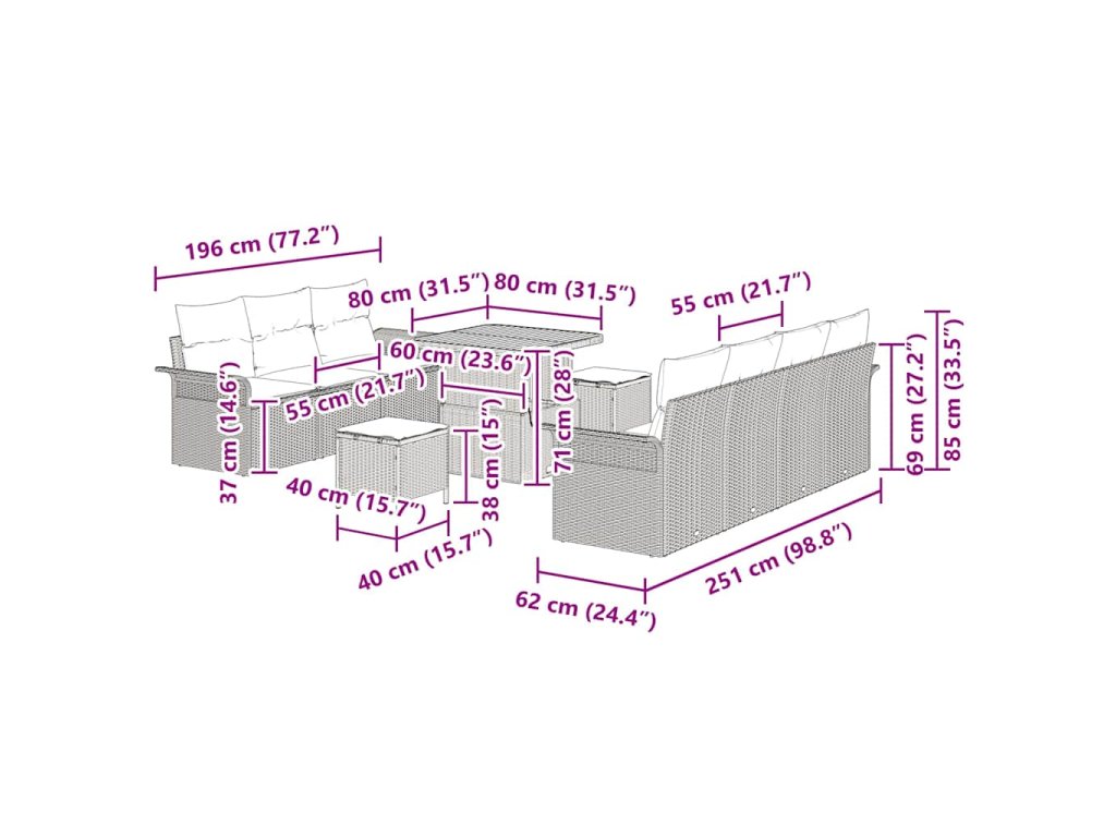 - Prémiové materiály: Tento pohovkový set je vyroben z odolného poly ratanu a akáciového dřeva, což zaručuje hezký vzhled a funkčnost. Materiály jsou vybrané pro svou odolnost proti počasí, snadno se udržují a odolávají UV záření, vlhkosti a každodennímu používání, což přináší klid a skvělou hodnotu pro venkovní oblasti.