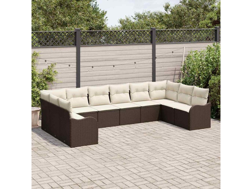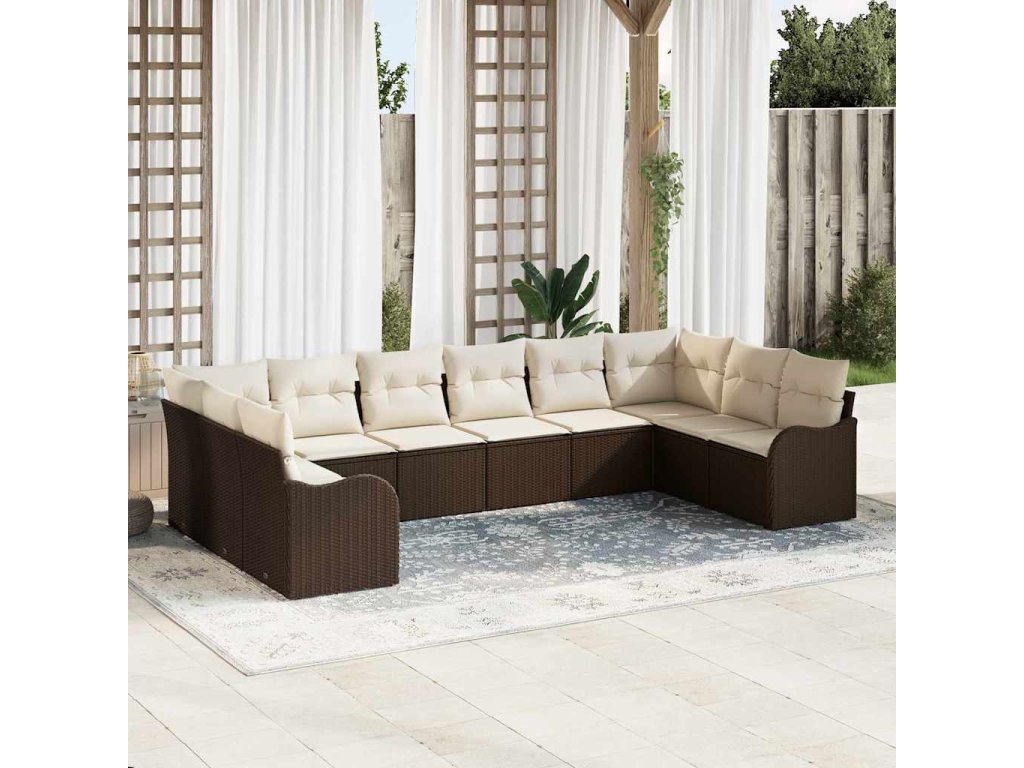 Sada zahradních pohovek 10 pcs Hnědá a bílá polyratan 3354547