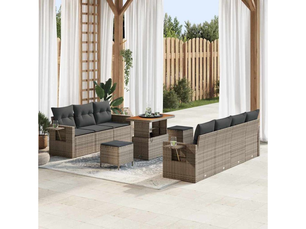 Sada zahradních pohovek 10 pcs Šedá polyratan 3361713