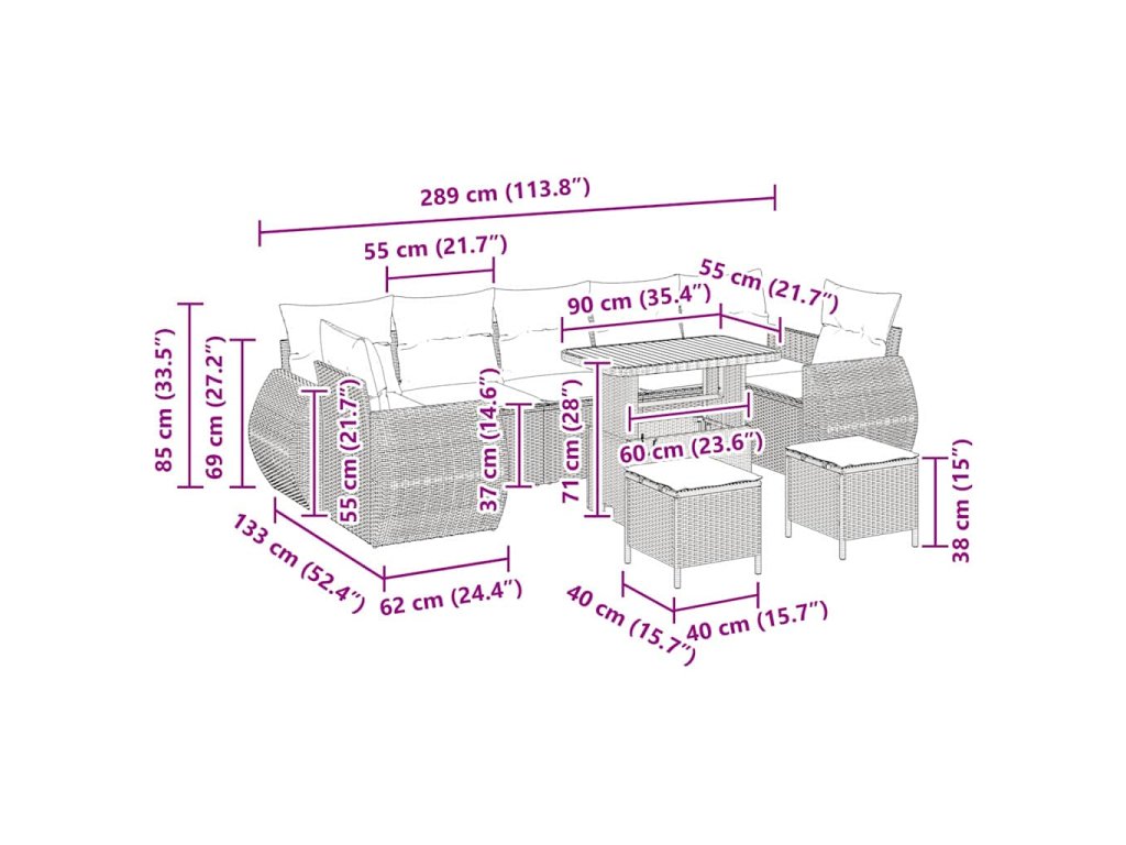Sada zahradních pohovek 10 pcs Šedá polyratan 3361863