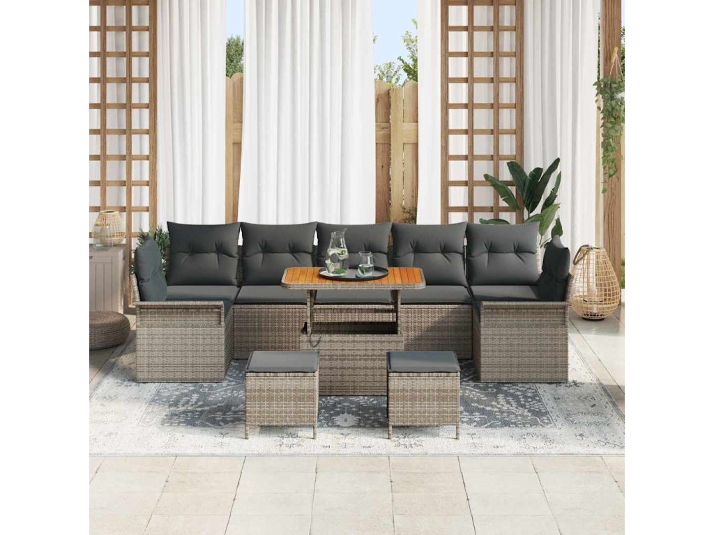 Tato Moderní zahradní pohovka přináší elegantní a praktický styl do každé venkovní oblasti. S čistými liniemi a bez zbytečného zdobení se tato sada hodí do jakékoliv zahrady nebo na terasu a nabízí styl i pohodlí. Ideální pro pořádání večírků s přáteli nebo pro chvíle odpočinku, modularita sady vám umožní přizpůsobit uspořádání podle potřeby. Poly ratan a masivní akaciové dřevo zajišťují jak estetiku, tak dlouhou životnost.