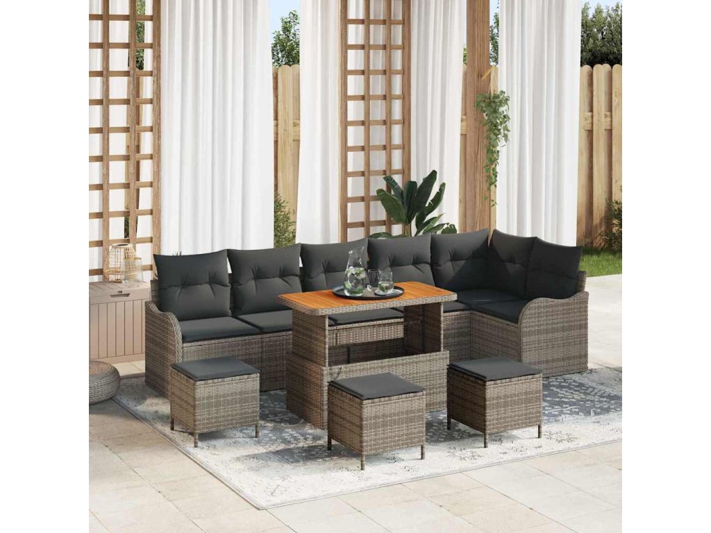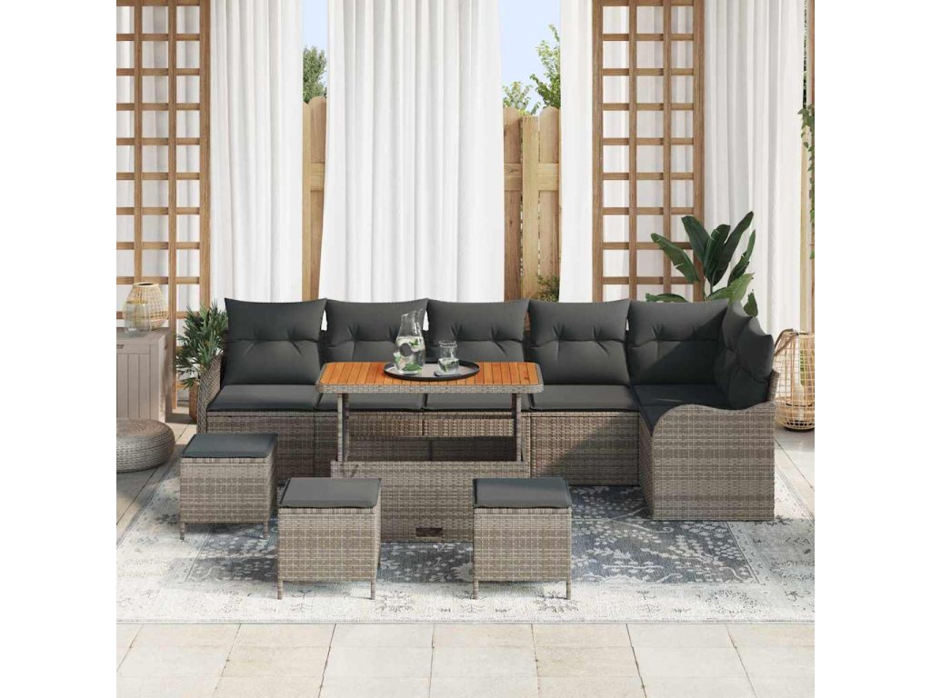 Sada zahradních pohovek 10 pcs Šedá polyratan 3362293