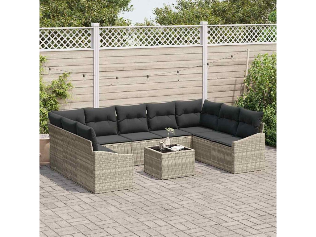 Sada zahradních pohovek 10 pcs Světle šedá Poly ratan 3346892