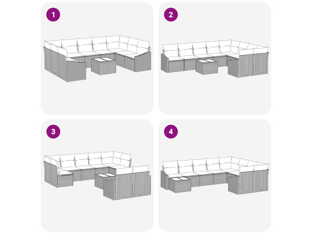 Tahle moderní sestava zahradních pohovek ladí s jednoduchostí a funkčností díky čistým liniím a minimálním ozdobám. Je ideální na jaro a léto, její vkusný design se hodí do zahrad a na terasy a vytváří tak příjemný venkovní prostor. Díky přizpůsobitelným sekcím nabízí spoustu sezení pro pohodlí a relaxaci při setkáních.