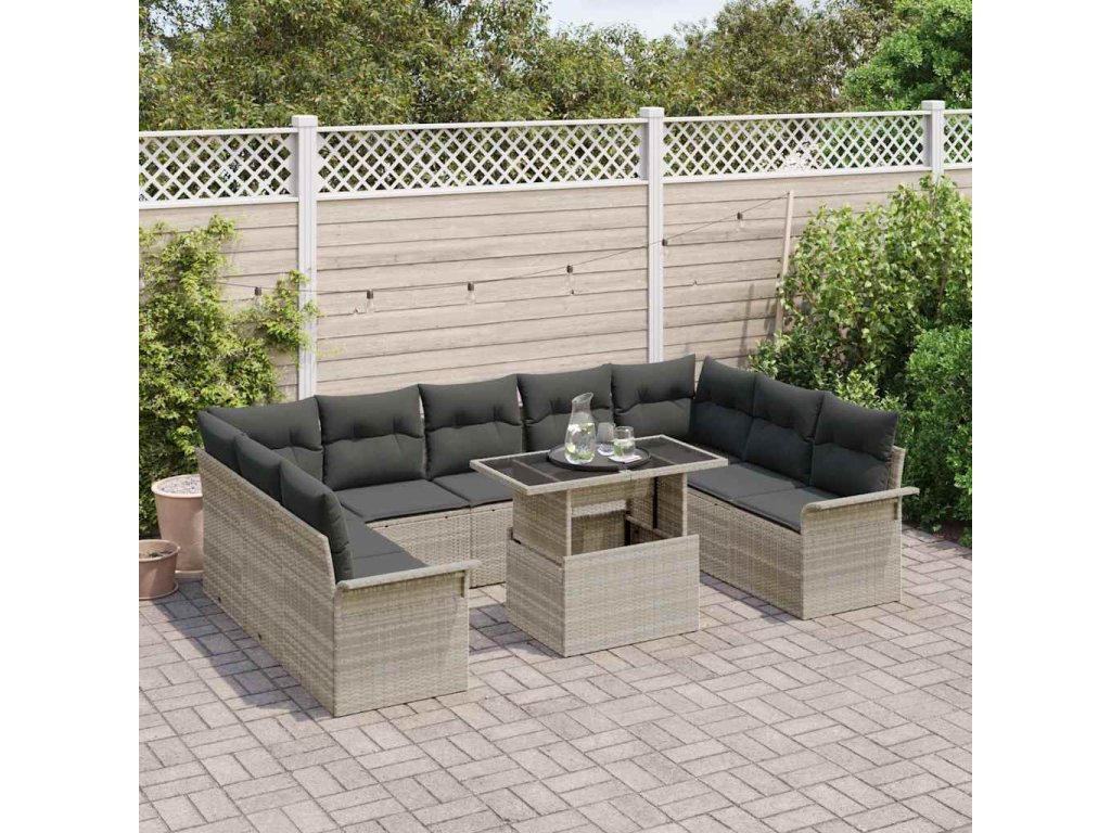Sada zahradních pohovek 10 pcs Světle šedá Poly ratan 3348348