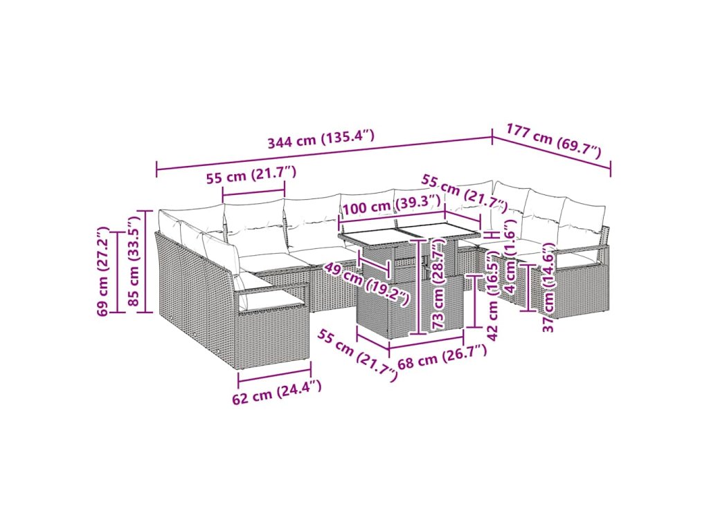 - Doporučené použití: Tenhle zahradní pohovkový set je ideální pro venkovní odpočinek v jakékoli moderní zahradě nebo terase. Perfektní na uvolněné večery nebo společenské akce, tahle sada se bez problému přizpůsobí různým prostředím a příležitostem, což z ní dělá všestranný kousek pro váš venkovní život.