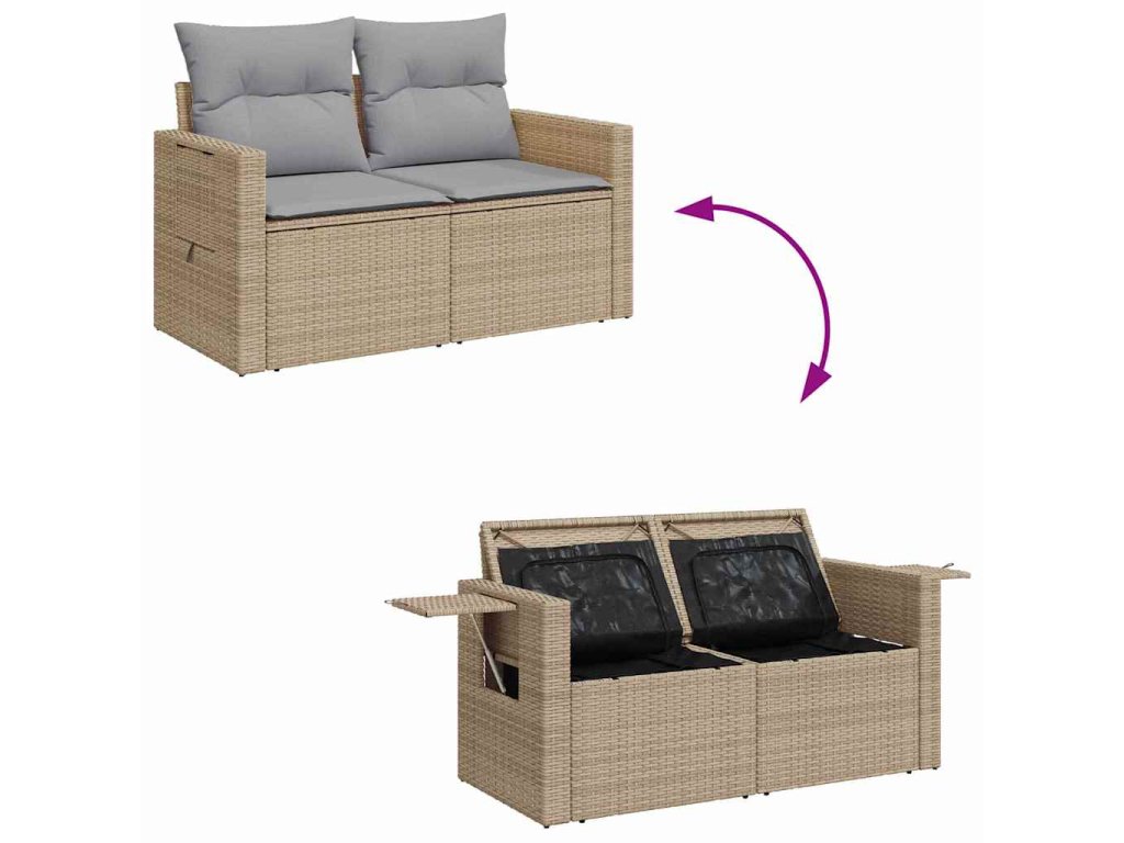 - Úložná řešení Skryté úložné prostory v lavicích a ottomanech vám nabízí dost místa na polštáře nebo jiné venkovní věci. Díky tomu zůstane váš prostor uklizený a funkční.