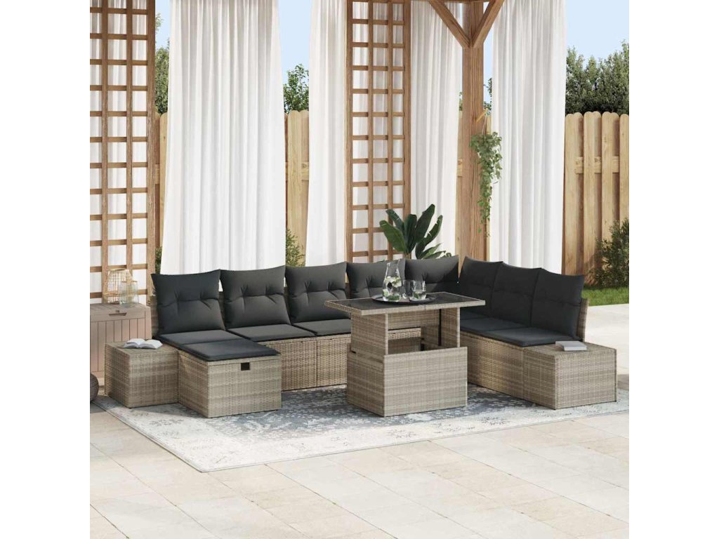 Sada zahradních pohovek 11 pcs Světle šedá Poly ratan 3359899