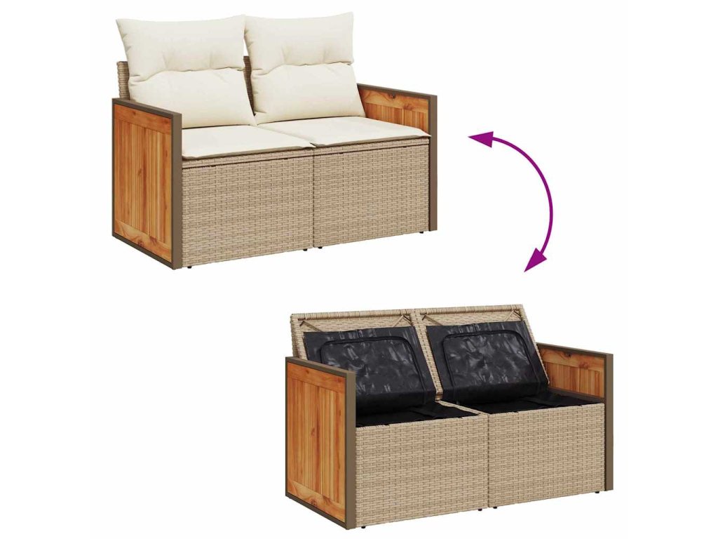 - Součásti: Sada zahradní pohovky obsahuje pohodlné venkovní polštáře vyrobené z tkaniny, která odolává počasí. Polštáře jsou s odnímatelnými potahy, což usnadňuje údržbu a přidává na pohodlí při relaxaci pod širým nebem.