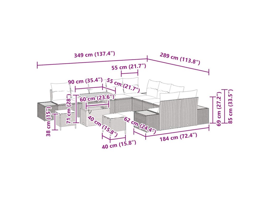 Sada zahradních pohovek 13 pcs Béžová polyratan 3362977